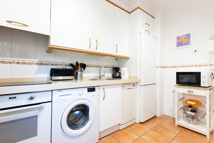 • Cocina totalmente equipada: cafetera, cubertería,  microondas,nevera, vitrocerámica, tostadora...