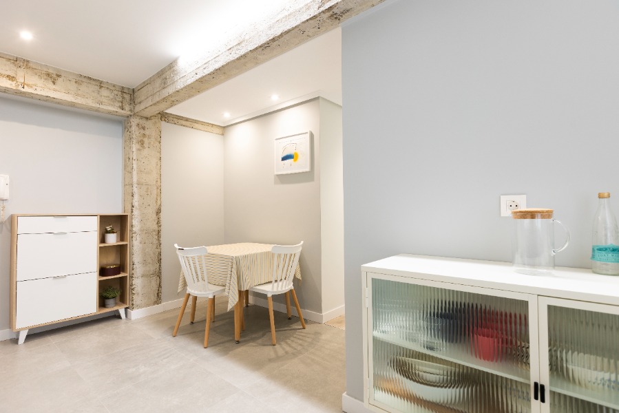 con ducha, 1 aseo, cocina americana y gran salón con mesa de comedor y salida a balcón con tenderete.